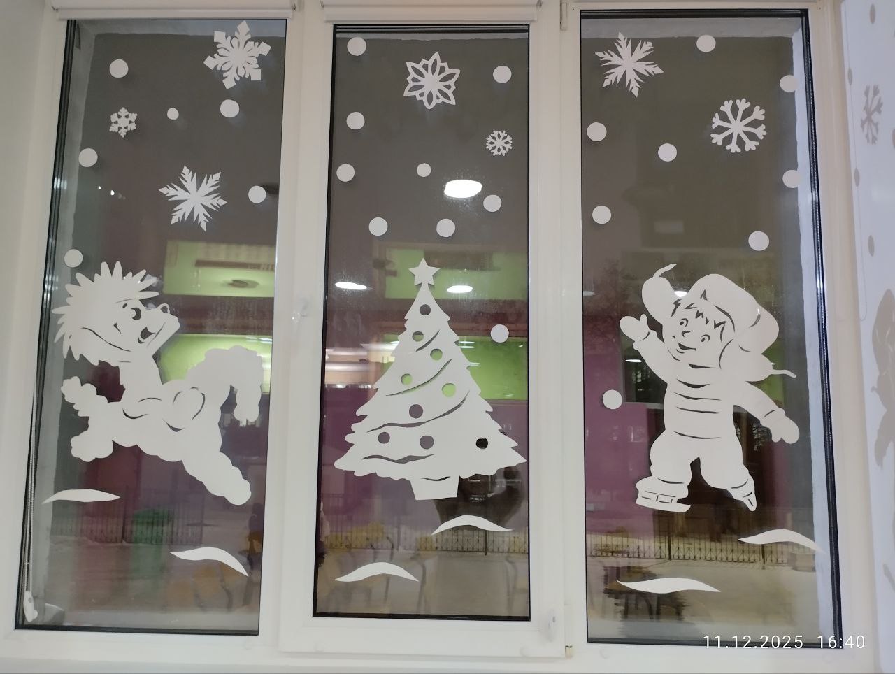 Хлопоты, связанные с праздником, неповторимы для каждого из нас, они очень радуют всех вокруг. Новый год - время волшебства и сказки, когда хочется окружить себя праздничной атмосферой. В России было принято, наряжая елку, не скупиться на украшения. И мы, следуя традициям, оформили окна флажками, гирляндами, звездами, снежинками, шариками. Главной героиней стала ажурная ёлка, выполненная из нежных снежинок. Нашу красавицу увенчали Вифлеемской звездой. Украсив окна к Новому году и Рождеству, мы превнесли в свою жизнь немного волшебства, которого ждут все: и дети, и взрослые.