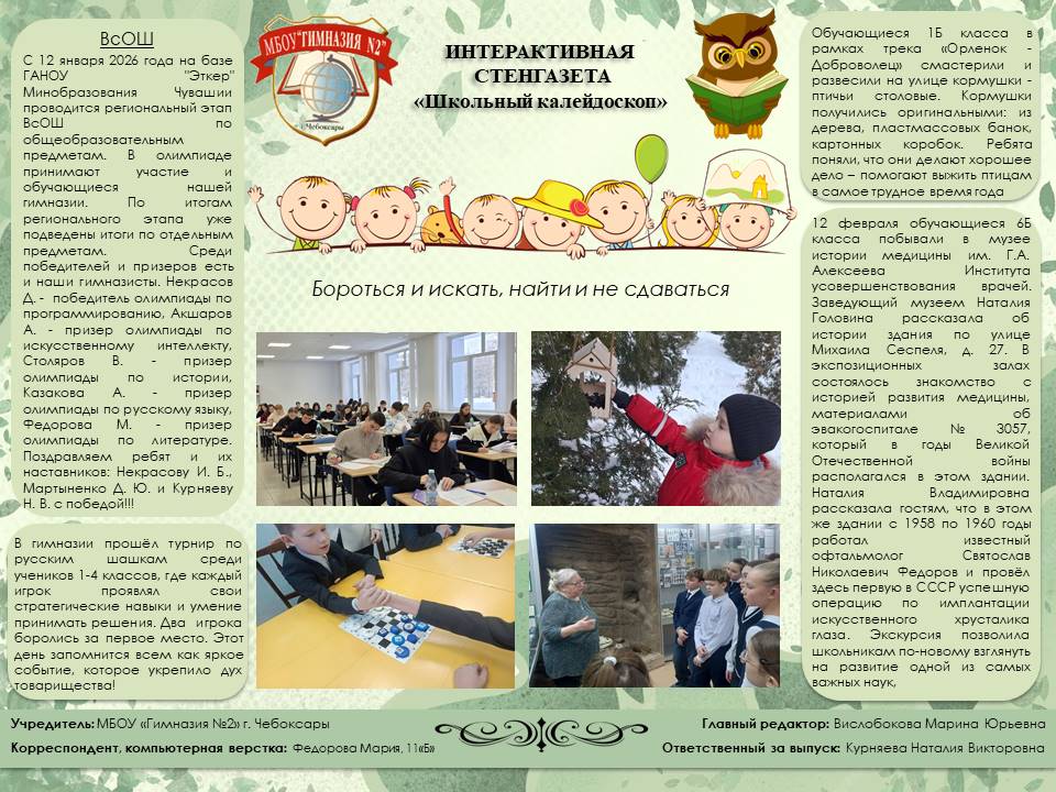 Выпуски газеты "Школьный калейдоскоп":